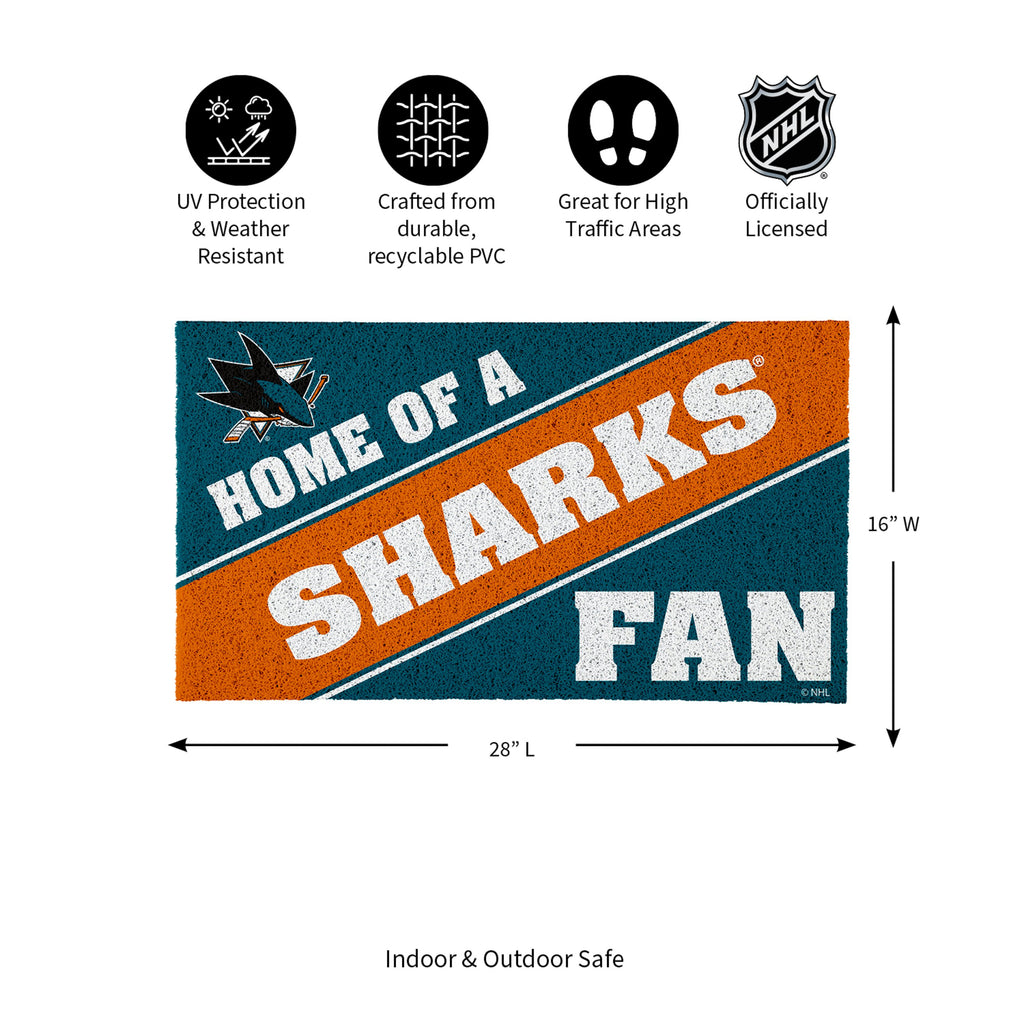 Show off your team pride with this San Jose Sharks PVC mat, perfect for any fan's home entrance or patio. Its durable construction makes it ideal for both indoor and outdoor use.