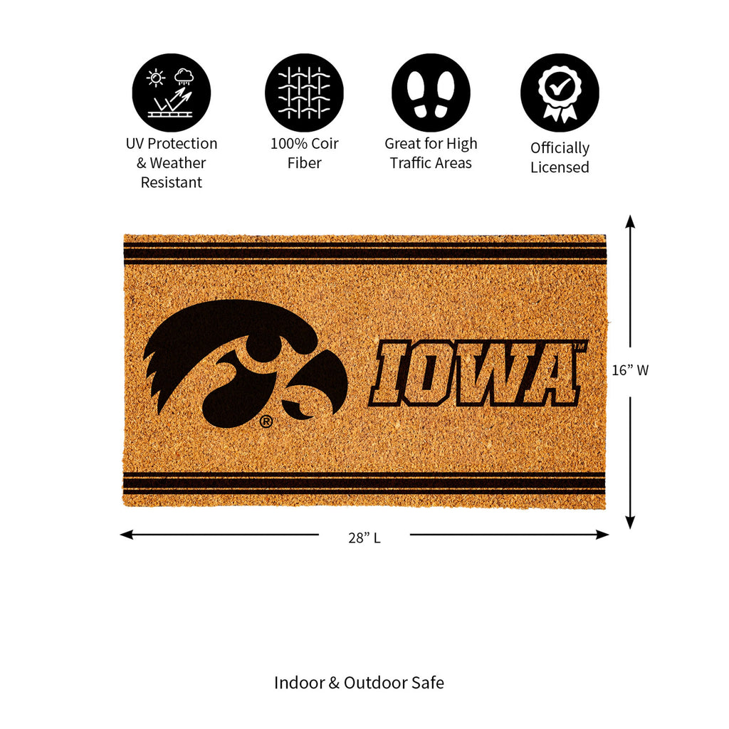 Welcome guests with pride using this officially licensed University of Iowa coir mat. Made from 100% coir fiber, it's perfect for both indoor and outdoor use.