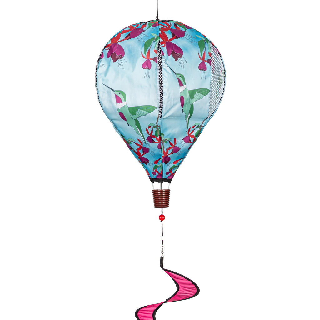 Enhance your garden with the vibrant Hummingbird Feeding Animated Balloon Spinner, featuring colorful hummingbirds and flowers that come to life with the breeze.