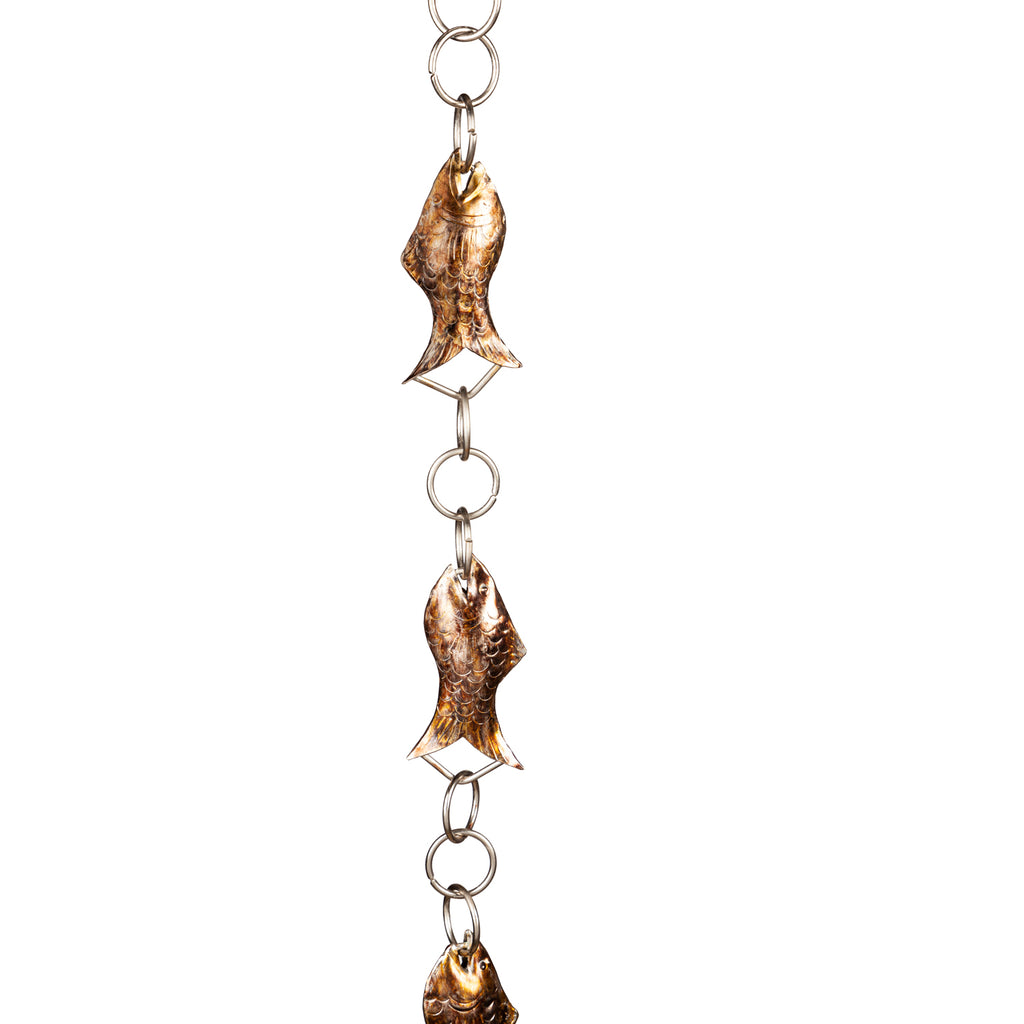 Indulge in a chic alternative to a gutter downspout with this stunning rain chain. Water comes alive as the string of copper finish metal fish transports run-off from your gutter to a drain or rain basin (sold separately). This process is a mesmerizing sp