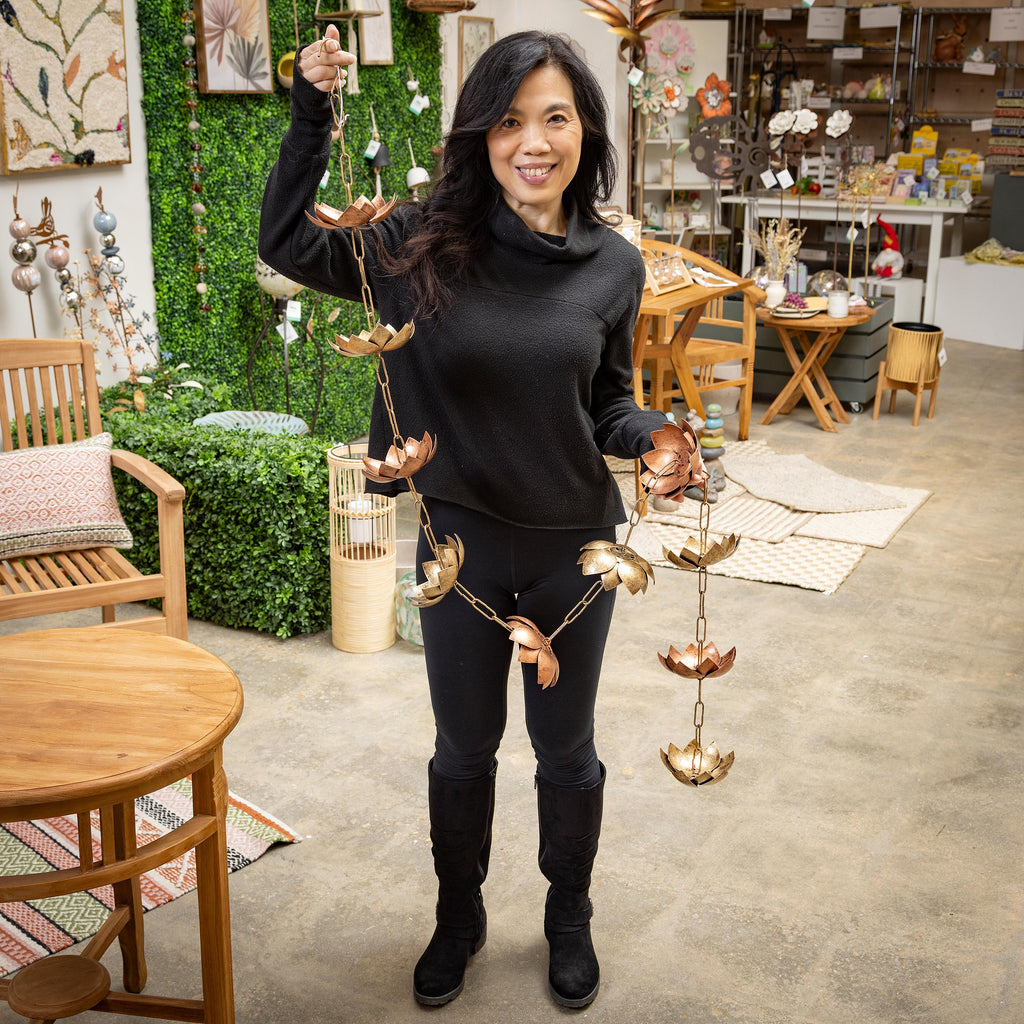 Enhance your garden with this elegant Lotus Metal Rain Chain, featuring a beautiful lotus design that adds a touch of tranquility to any outdoor space.