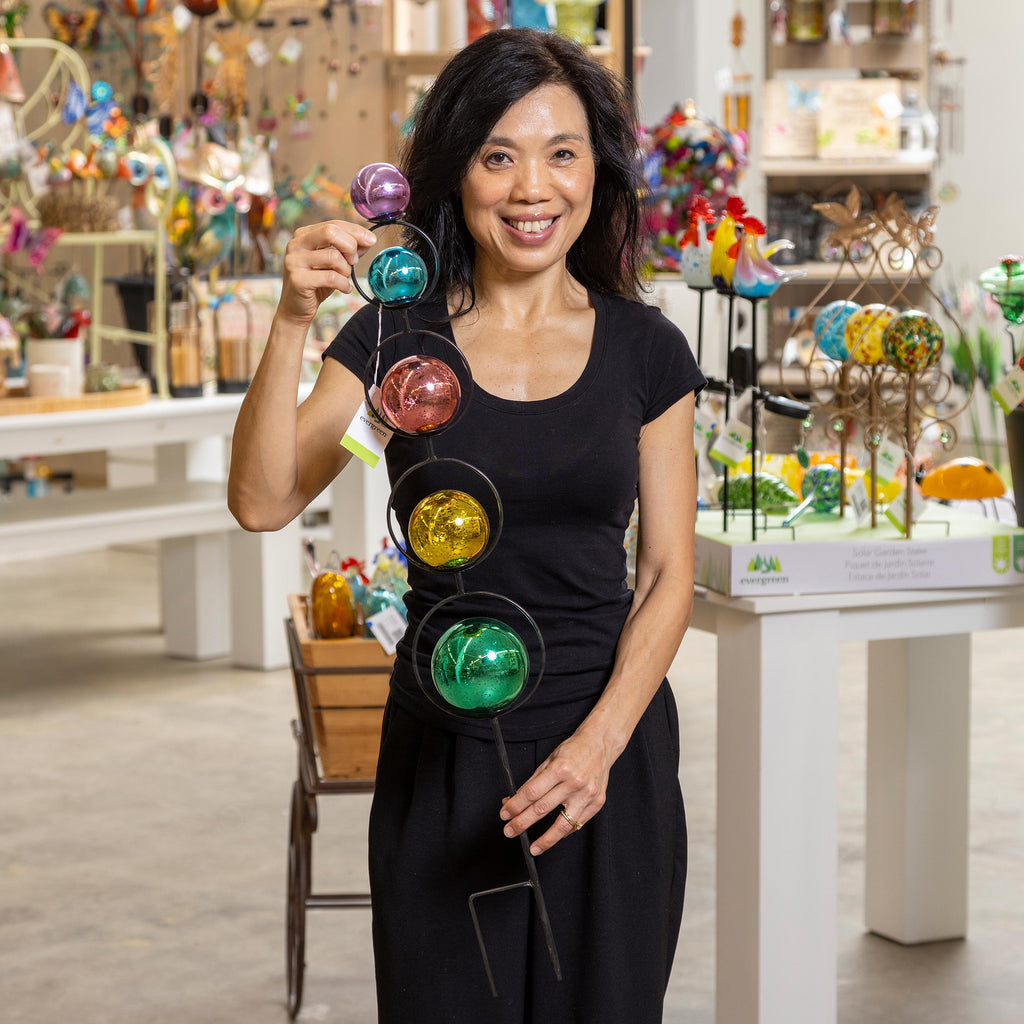 Enhance your garden's charm with the Palm Beach Garden Stake, featuring a vibrant shatterproof rainbow orb design. This 30-inch tall stake adds a touch of whimsy to any outdoor space.