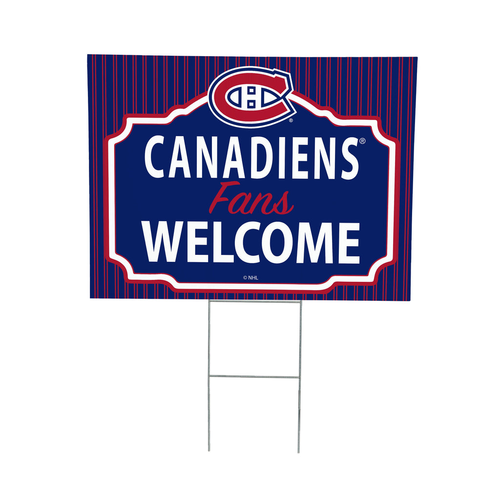 Show your team pride with the Montreal Canadiens 'Fans Welcome' yard sign, perfect for any outdoor space.