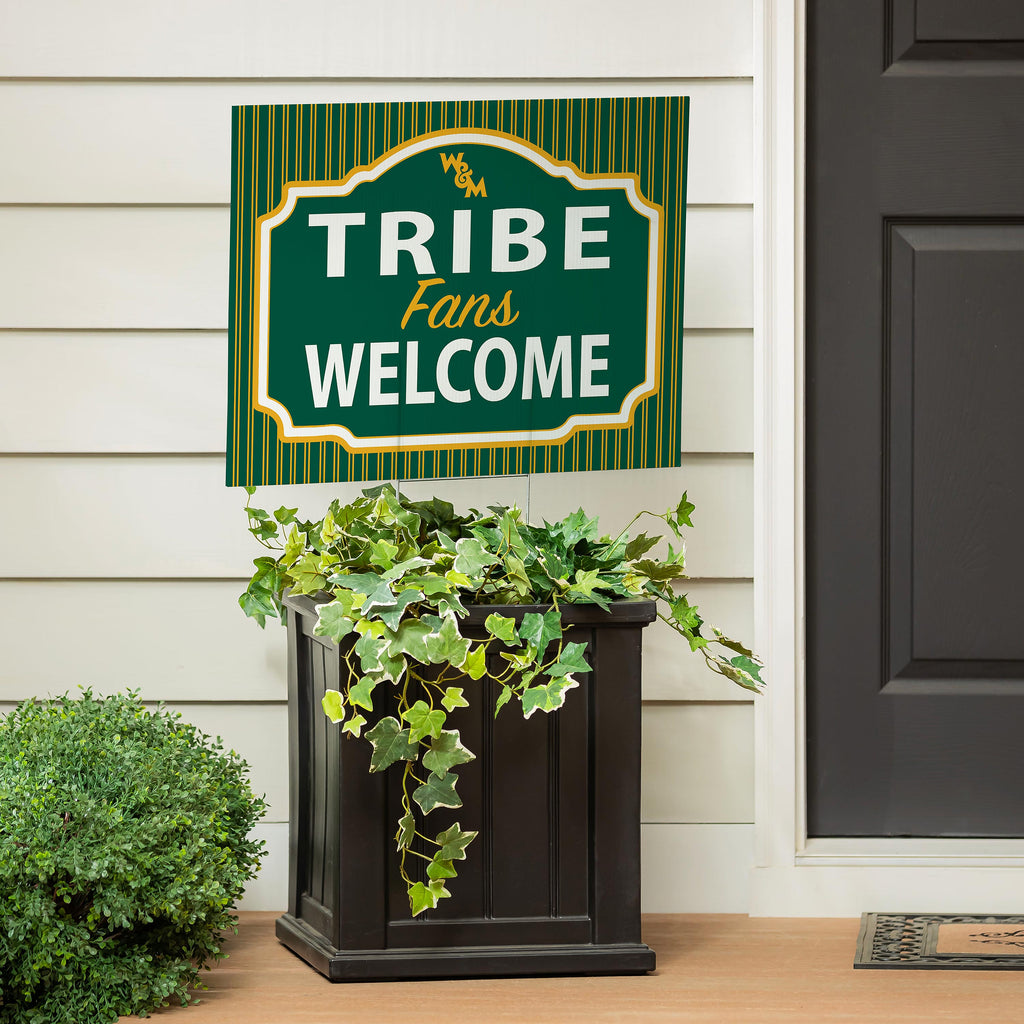 Showcase your support with the William & Mary 'Fans Welcome' yard sign, perfect for any garden or outdoor space. This eye-catching sign features bold lettering and vibrant colors, making it a welcoming addition for fans.