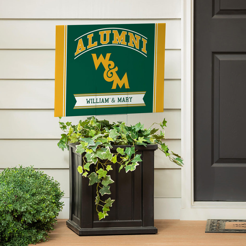 Proudly display your William & Mary alumni status with this vibrant yard sign, perfect for any garden or outdoor space.