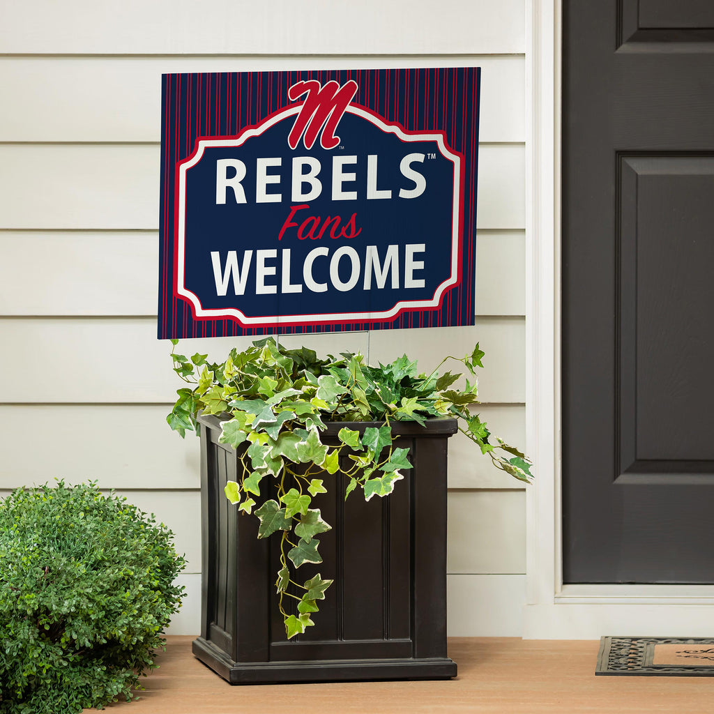 Show your support for the University of Mississippi with this vibrant 'Rebels Fans Welcome' yard sign. Made from durable coroplast, it's perfect for displaying your team spirit outdoors.