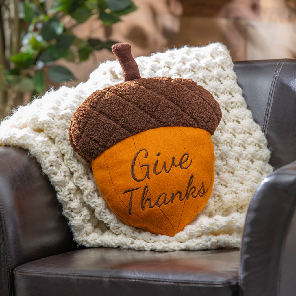 13" Shaped Pillow with Embroidering, Acorn,4sp36007