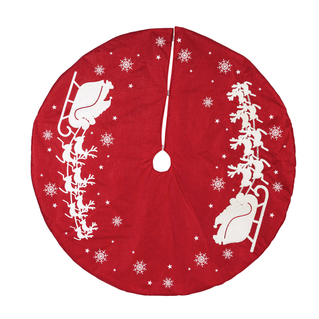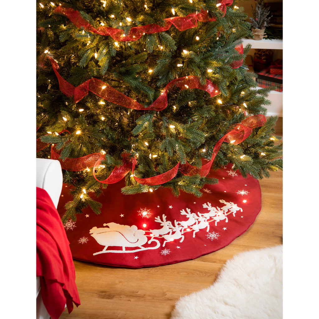 47" Fabric Tree Skirt with Embroidered Detail and LED, Santa Sleigh,4ts554
