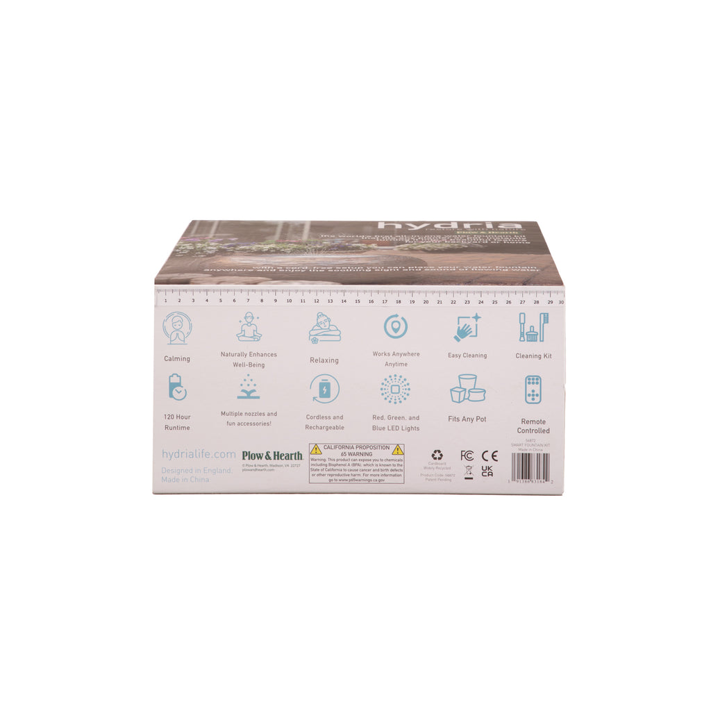 Transform any pot or planter into a beautiful water feature with our Hydria Smart Fountain Kit. The versatile module is easy to use: simply choose any 12" pot or planter, add filler rocks and the fountain kit, decorate and customize, fill with water, and