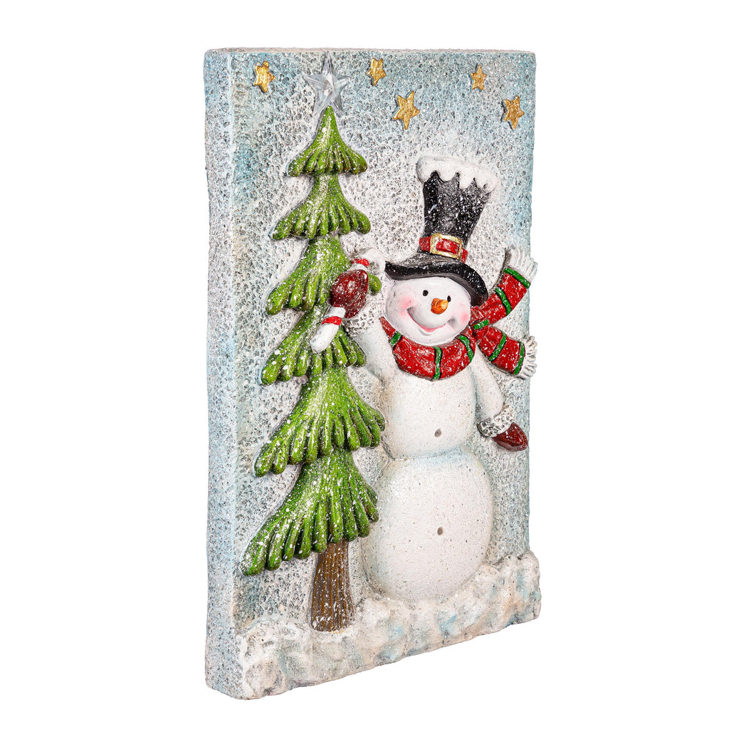 Traditional Santa Wall Decor, LED MGO Textured Wall, Snowman with Tree