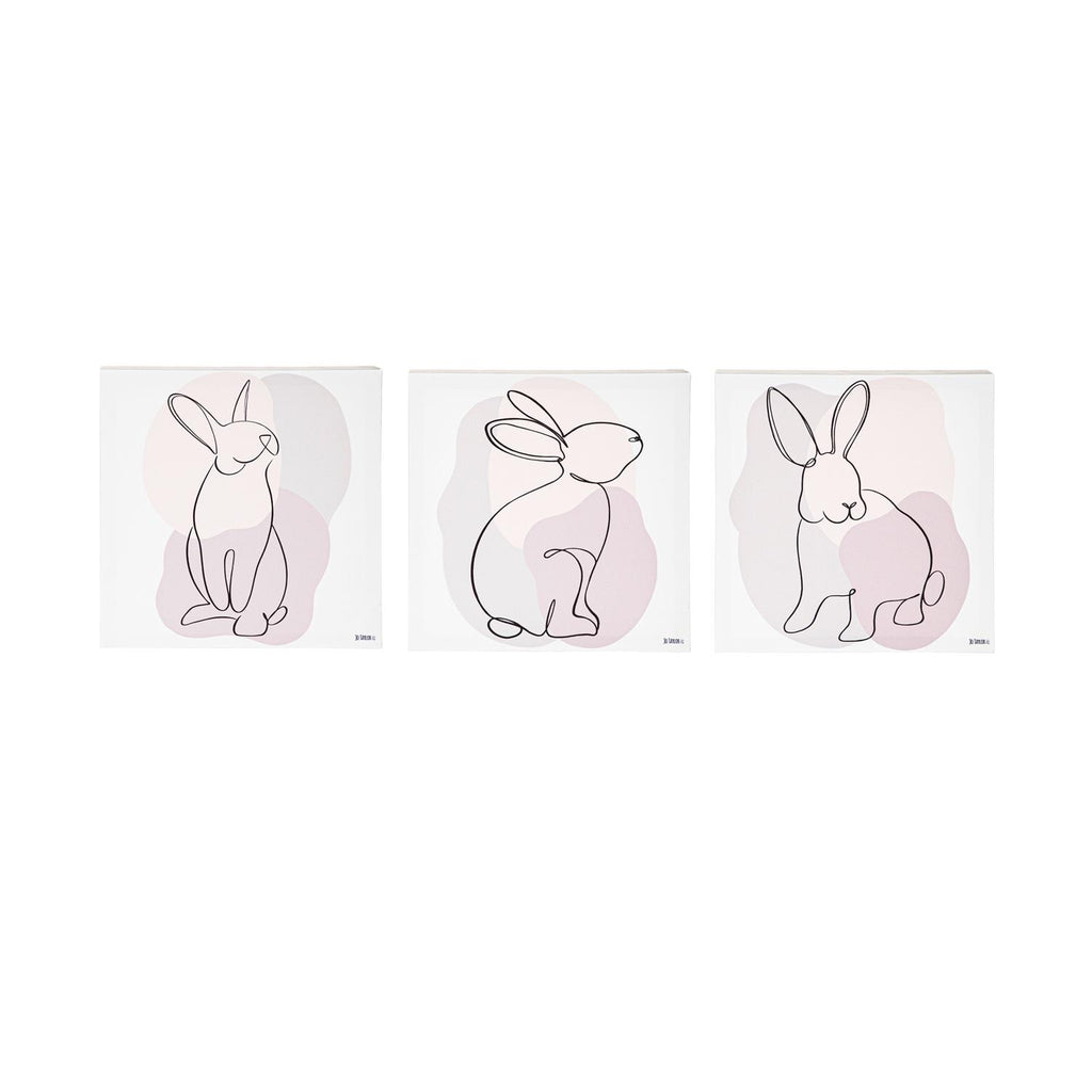 Elevate your interior with this charming indoor canvas featuring minimalist line drawings of bunnies. Measuring 10 inches square, this wall décor piece is ideal for adding a touch of whimsy and elegance to your space. The soft pastel backdrops complement a variety of color schemes, making it a versatile addition to any room. Crafted on high-quality canvas, this piece is perfect for living rooms, nurseries, or entryways, and is designed to captivate with its simplicity and charm. Let these adorable bunnies bring joy and tranquility to your home.