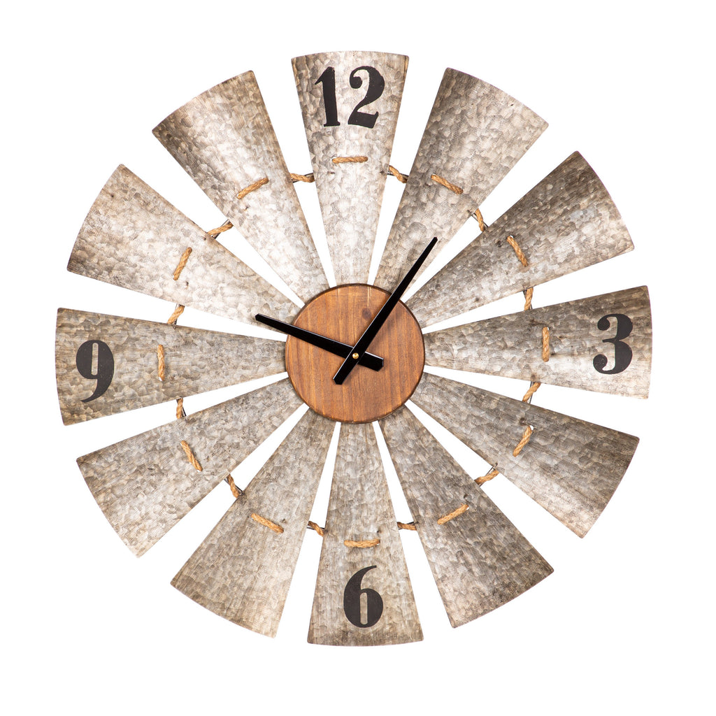 21" Metal and Wood Vintage Windmill Clock,6cl114a