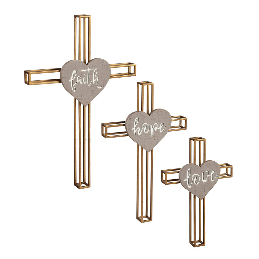 Crosses with Inspirational Words Wall Decor, Set of 3, Faith, Love, Hope,6m846