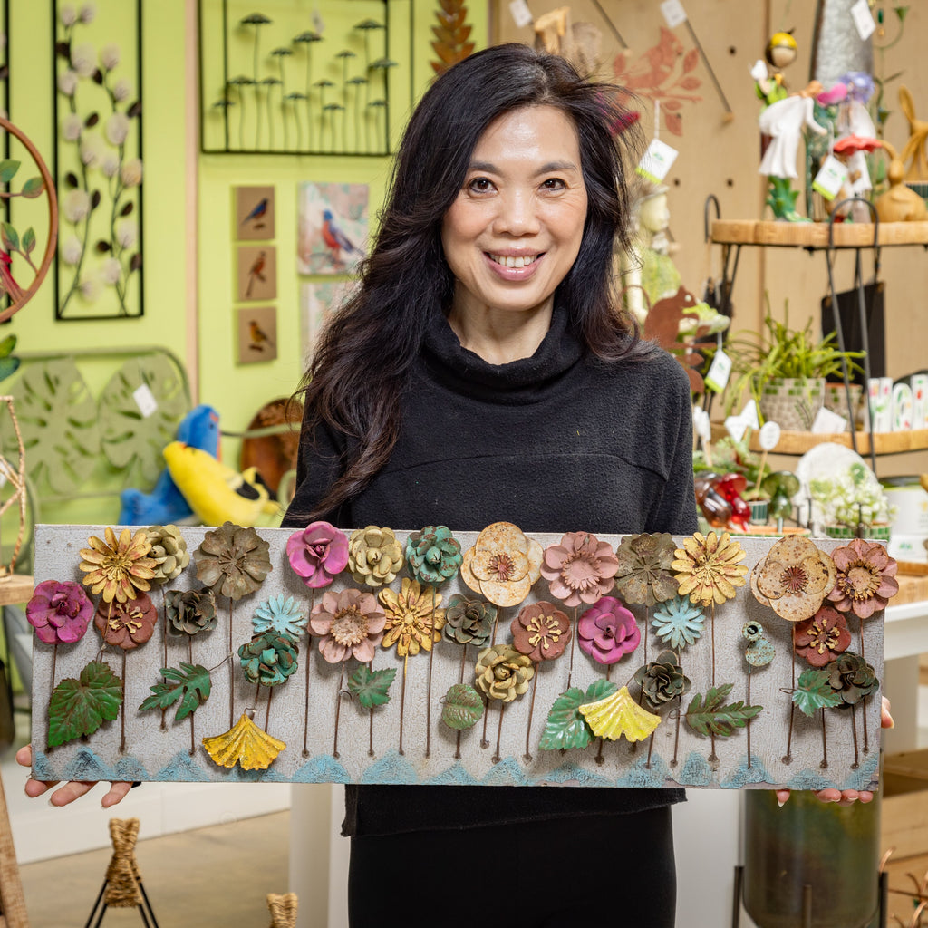 Enhance your indoor space with the What She Shed Indoor Wall Decor, featuring vibrant metal floral art. This piece brings a touch of garden charm to any wall with its colorful flower arrangement.