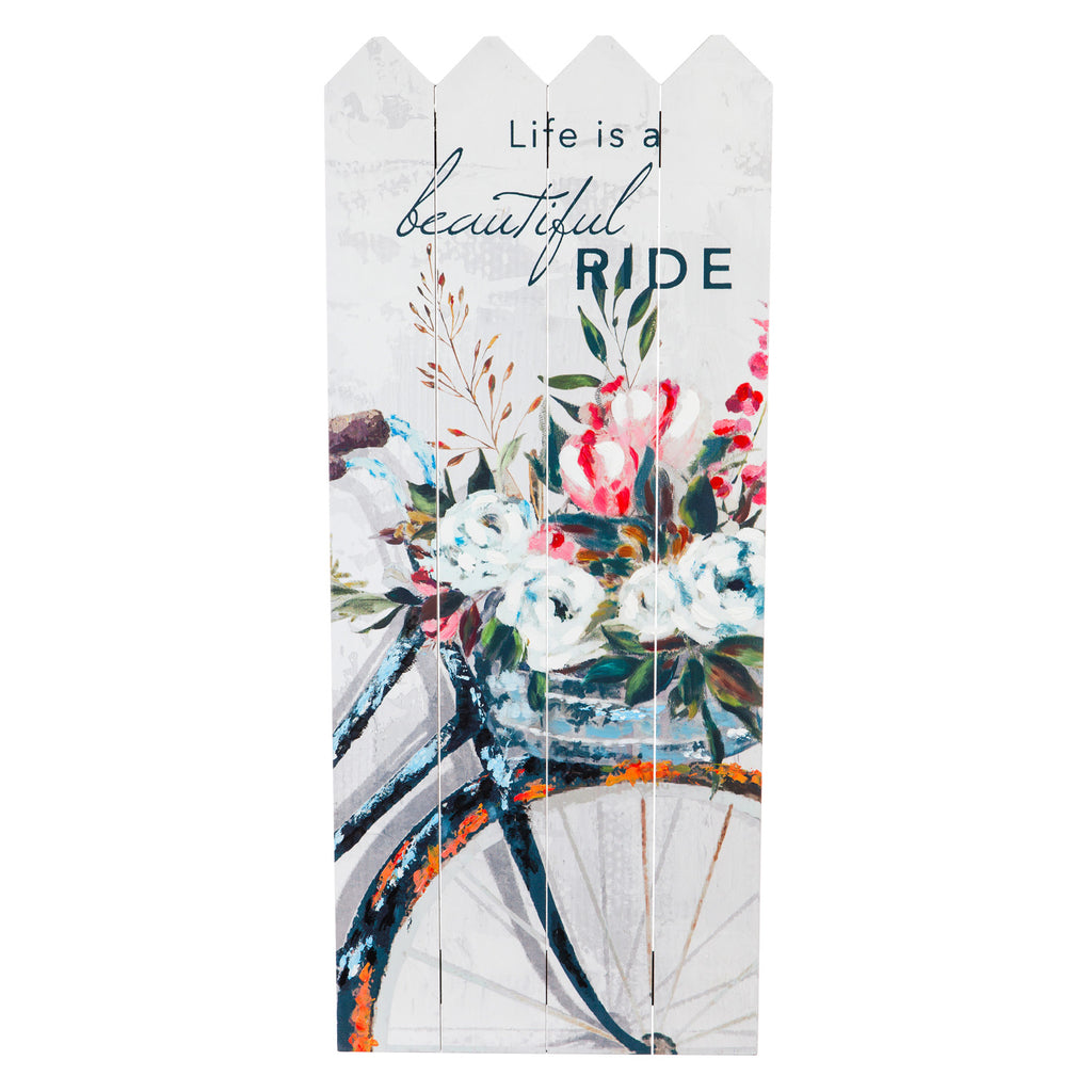 THE PERFECT SIZE: The Floral Bicycle Painted Wood Plank Wall Decor measures 12.6'' x 0.8'' x 29.9'' inches.