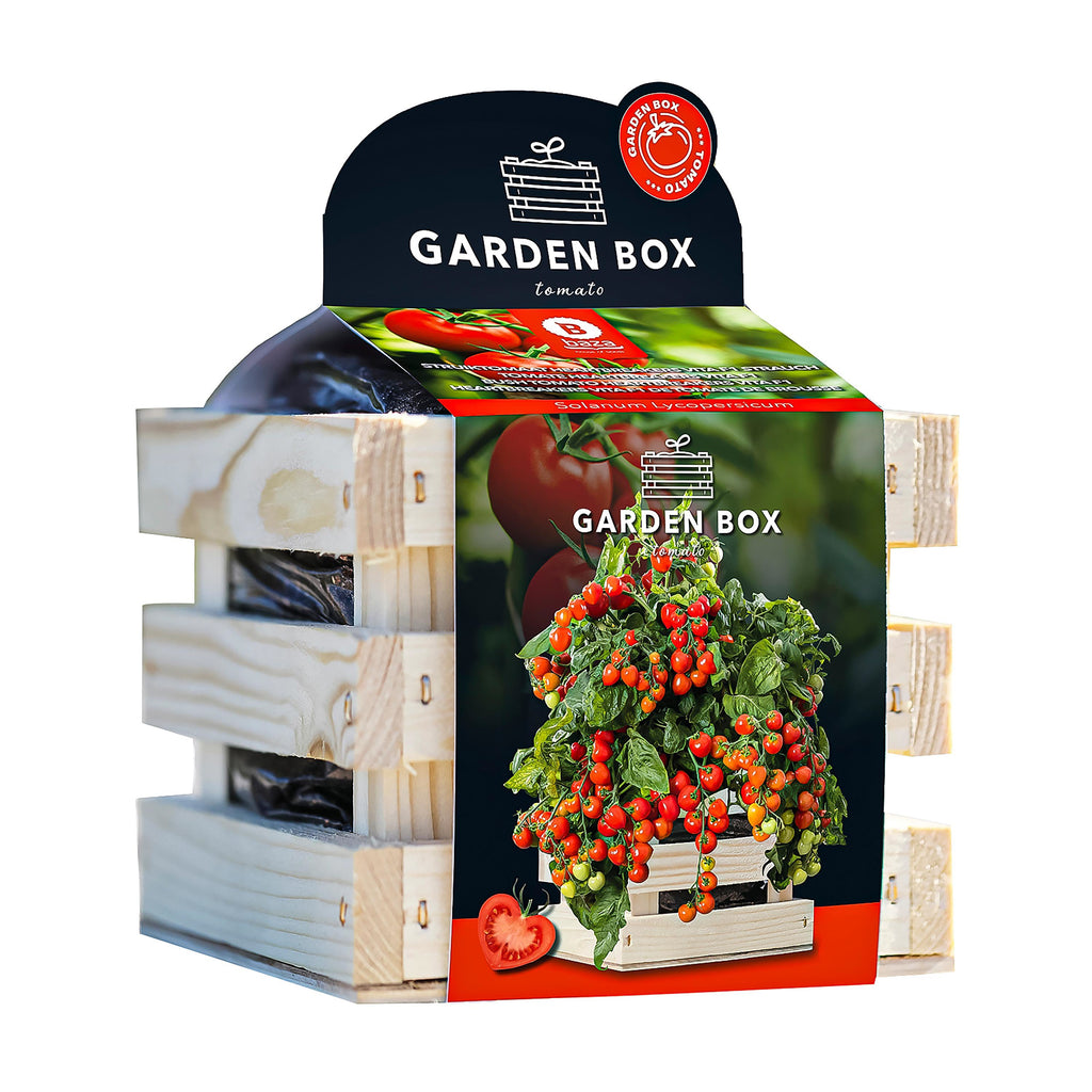 Grow your own delicious tomatoes with this convenient Tomato Grow Kit in a rustic wooden crate. Perfect for both novice and experienced gardeners, this kit provides everything you need to start your garden.