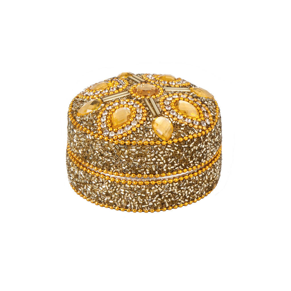 The Beaded Round Trinket Box With Top Brooch, 5 Asst measures 3'' x 3'' x 2'' inches