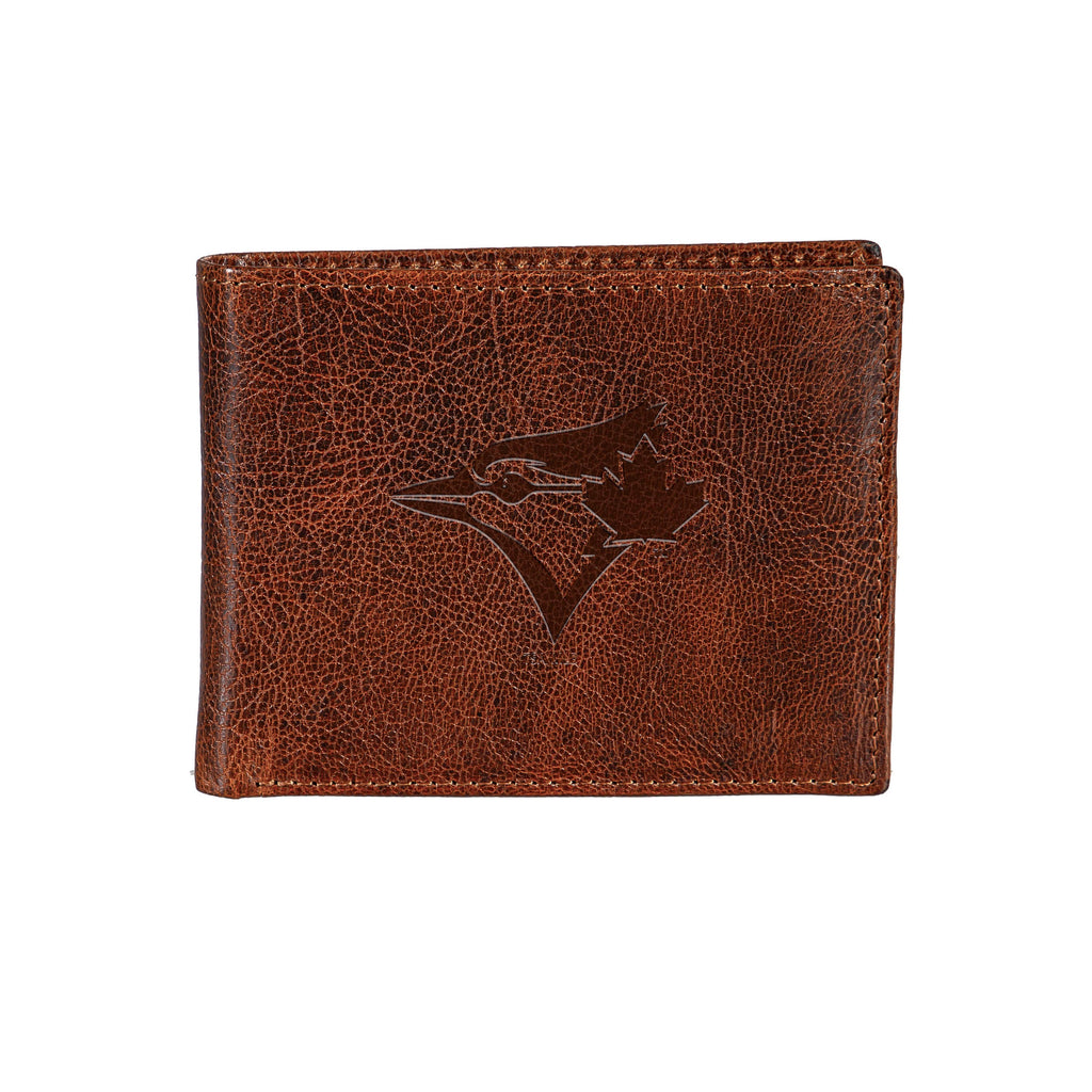 Show your support for the Toronto Blue Jays with this embossed genuine leather bi-fold wallet, ideal for any baseball fan. Crafted from 100% tumbled leather, it offers a classic and durable design perfect for everyday use.
