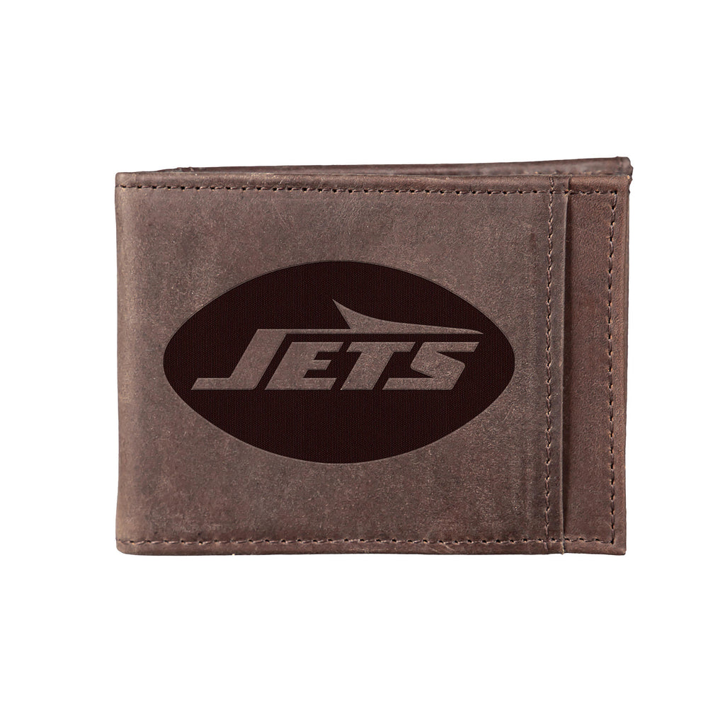 Carry your essentials in style with this New York Jets front pocket wallet, featuring RFID blocking technology and a sleek brown design.