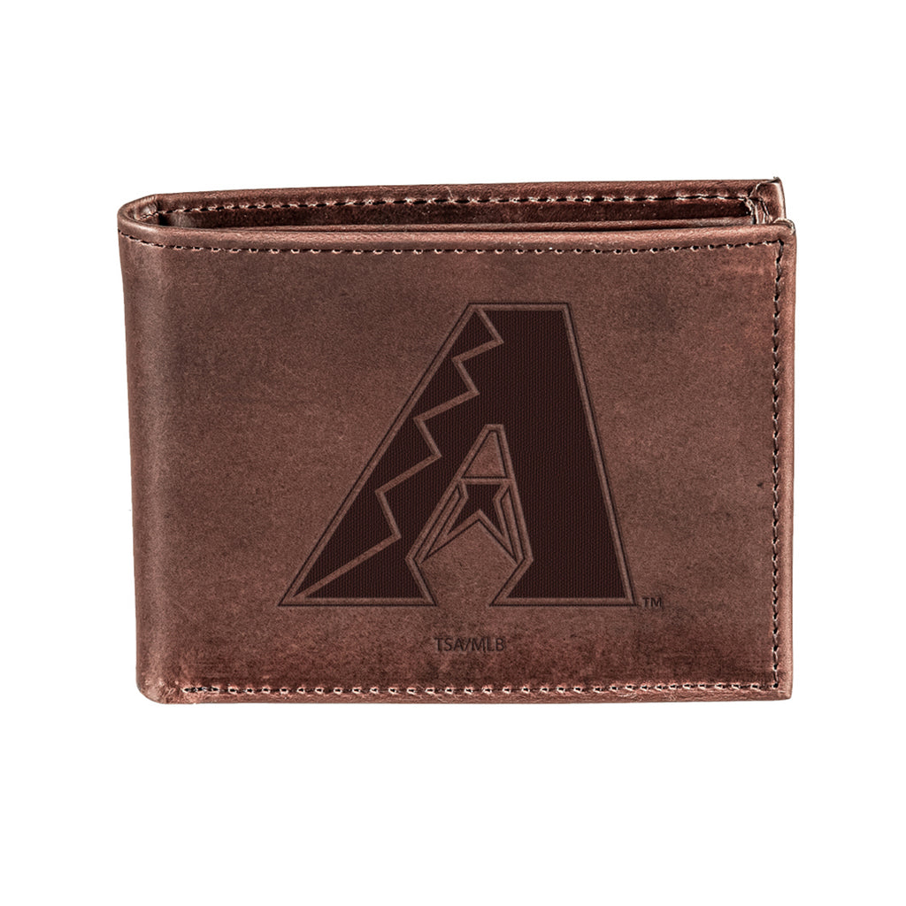 Show your team spirit with this Arizona Diamondbacks bi-fold wallet crafted from 100% genuine leather. The elegant brown wallet features the team's logo, making it a perfect gift for fans.