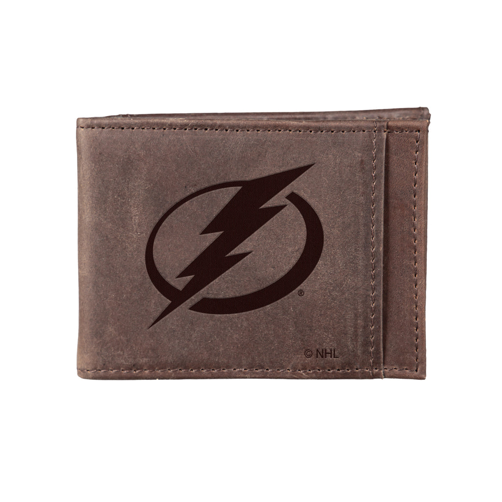 Keep your essentials secure and stylish with this Front Pocket Wallet featuring RFID blocking and the Tampa Bay Lightning logo. Crafted in brown, this wallet is perfect for fans and fashion enthusiasts alike.
