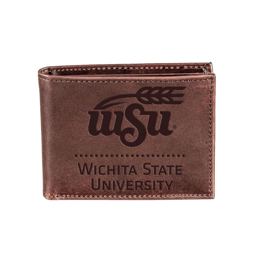 Show your school spirit with this elegant bi-fold wallet made from 100% genuine leather and embossed with the Wichita State University logo.