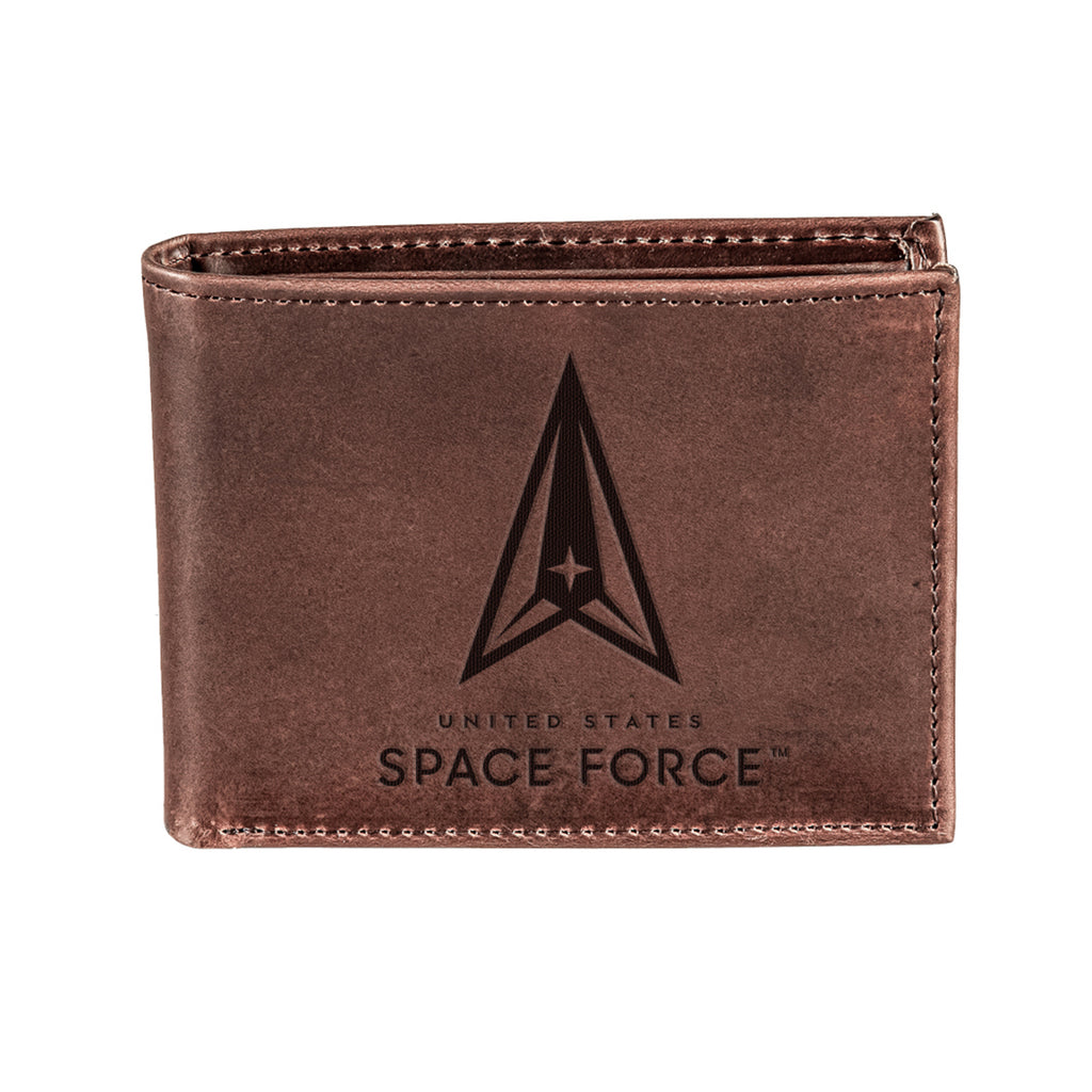 Carry your essentials in style with the US Space Force Brown Bi-Fold Wallet, crafted from 100% genuine leather. This wallet combines functionality with a nod to military pride, making it a perfect gift for any occasion.
