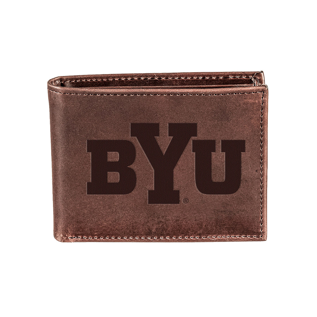 Brigham Young University, Bi-Fold Wallet, Brown, CH, 100% Genuine Leather