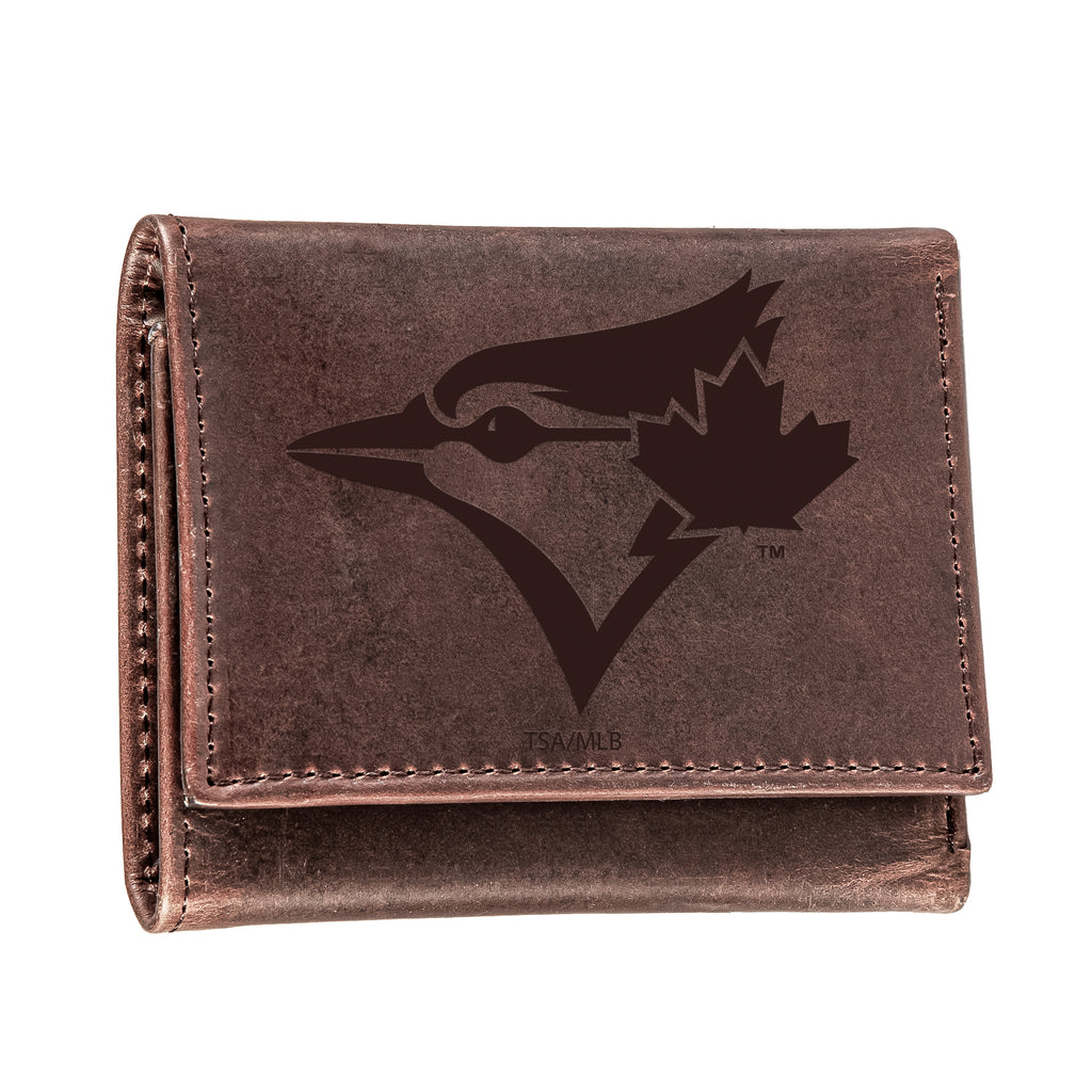 Toronto Blue Jays Tri-Fold Wallet Brown 100% Genuine Leather