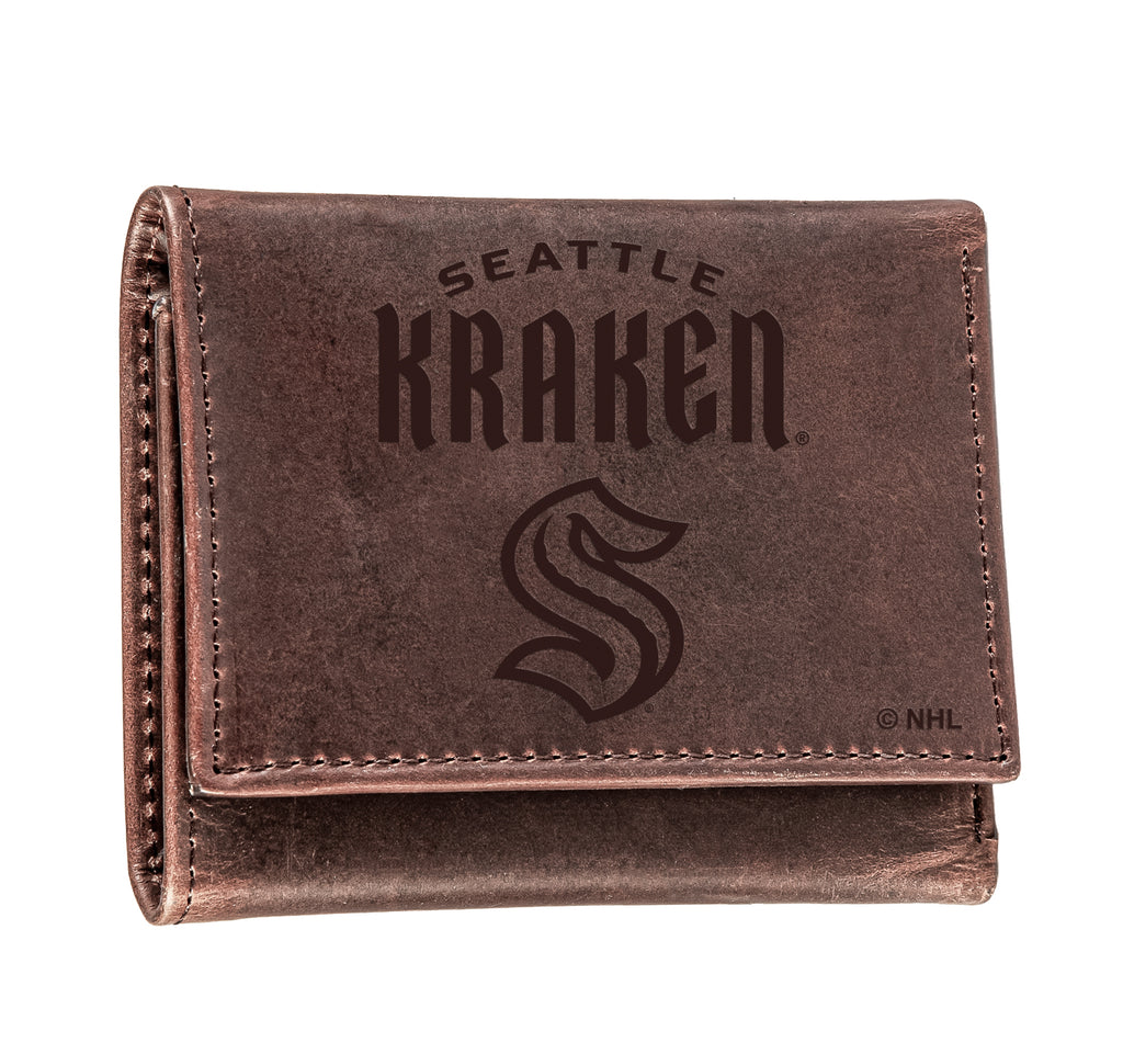 This Seattle Kraken tri-fold wallet is crafted from 100% genuine leather, offering a stylish and functional accessory for sports enthusiasts.