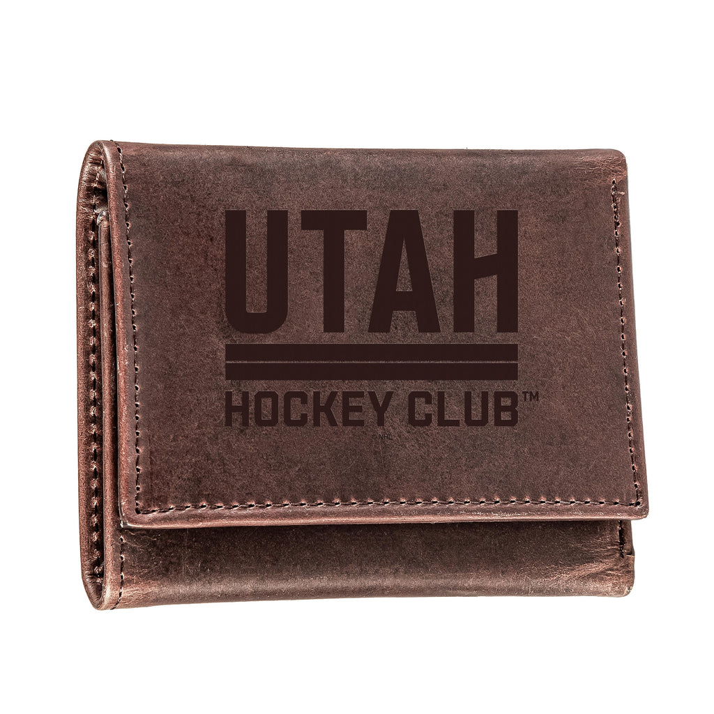 The Utah Hockey Club Tri-Fold Wallet is crafted from 100% genuine leather, combining style and functionality in a compact design. Its rich brown color makes it a versatile fashion accessory for any sports enthusiast.