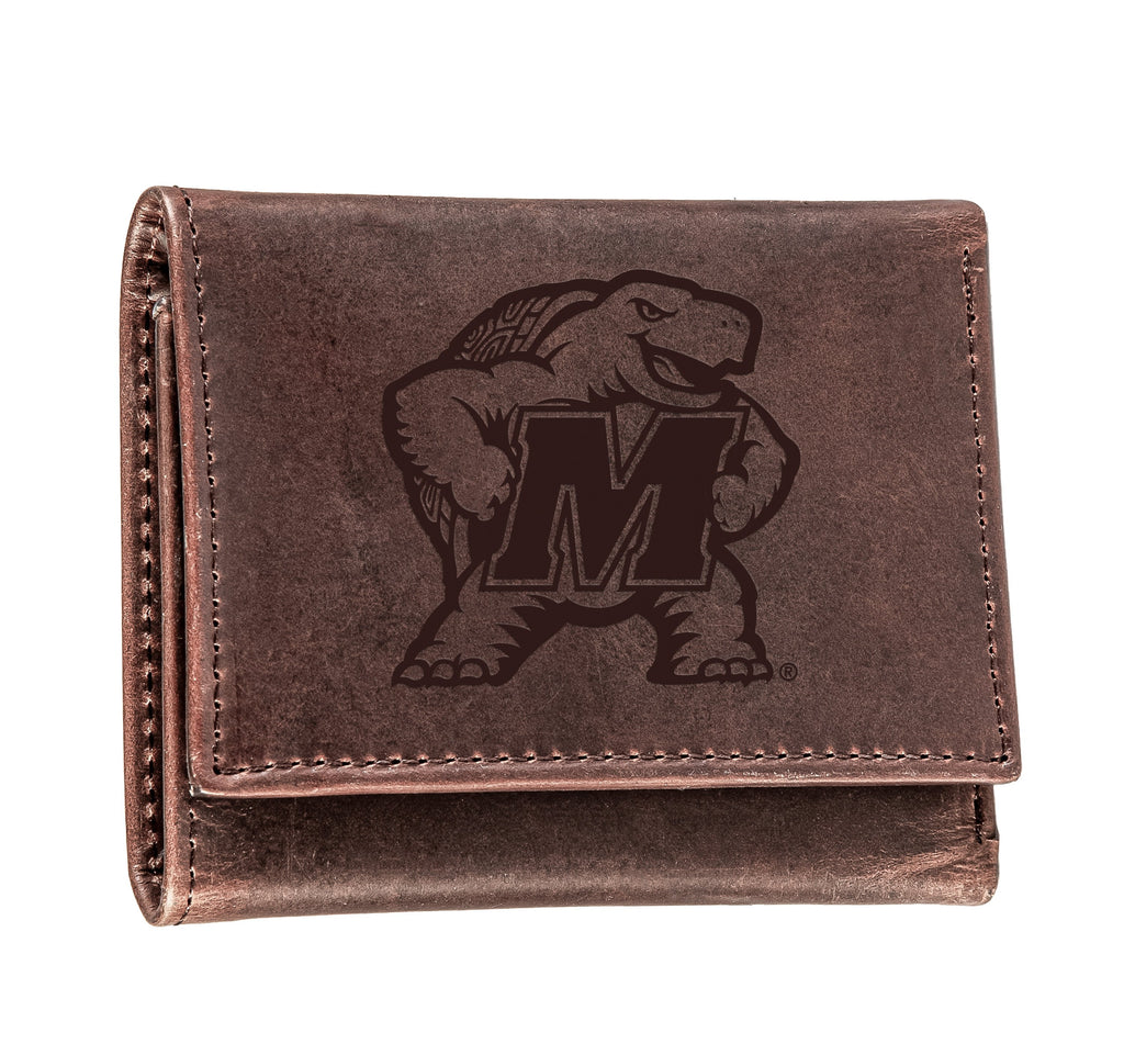 University of Maryland, Tri-Fold Wallet, Brown, CH, 100% Genuine Leather