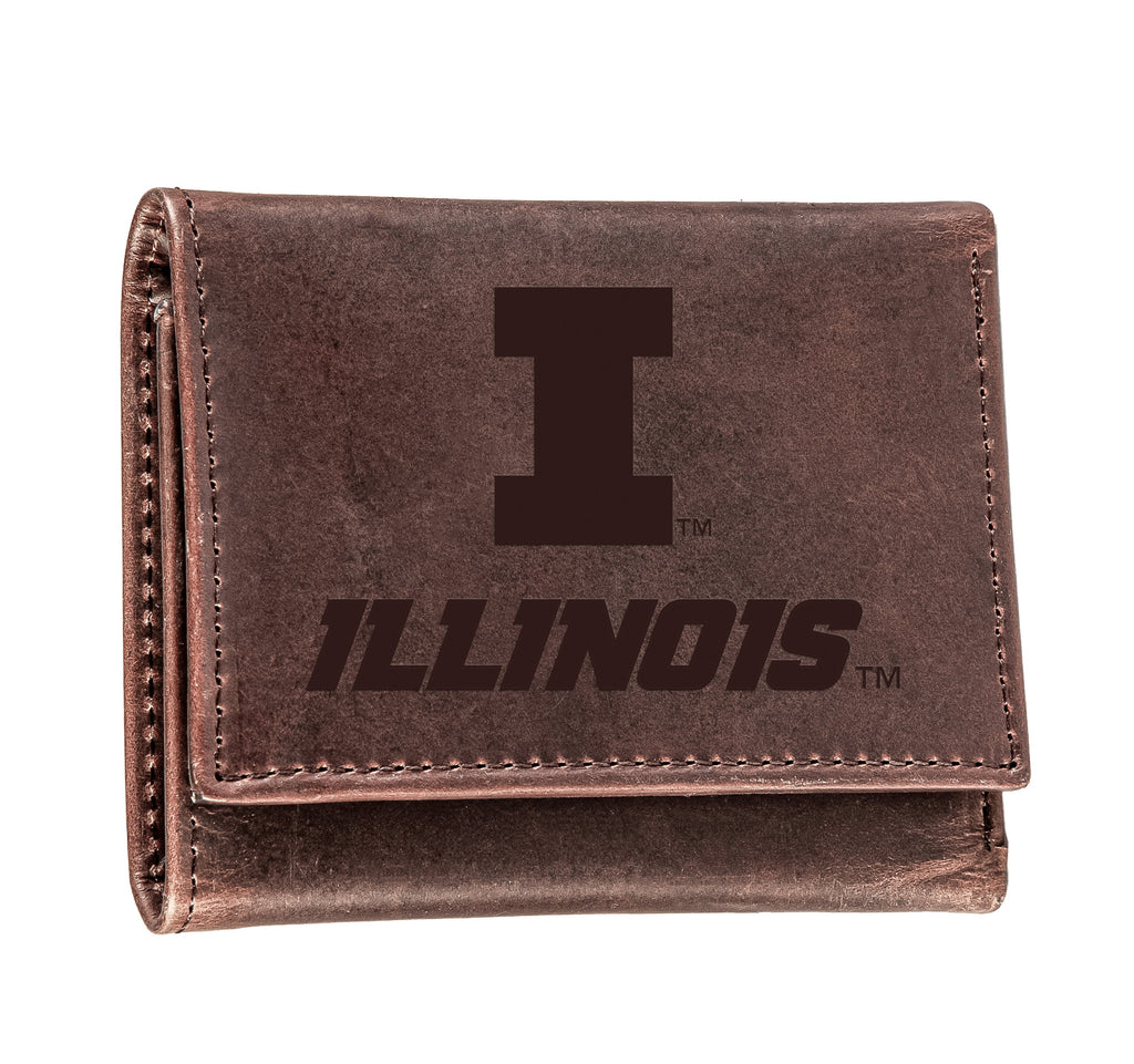 Show off your school pride with this University of Illinois Tri-Fold Wallet, crafted from 100% genuine leather for durability and style.