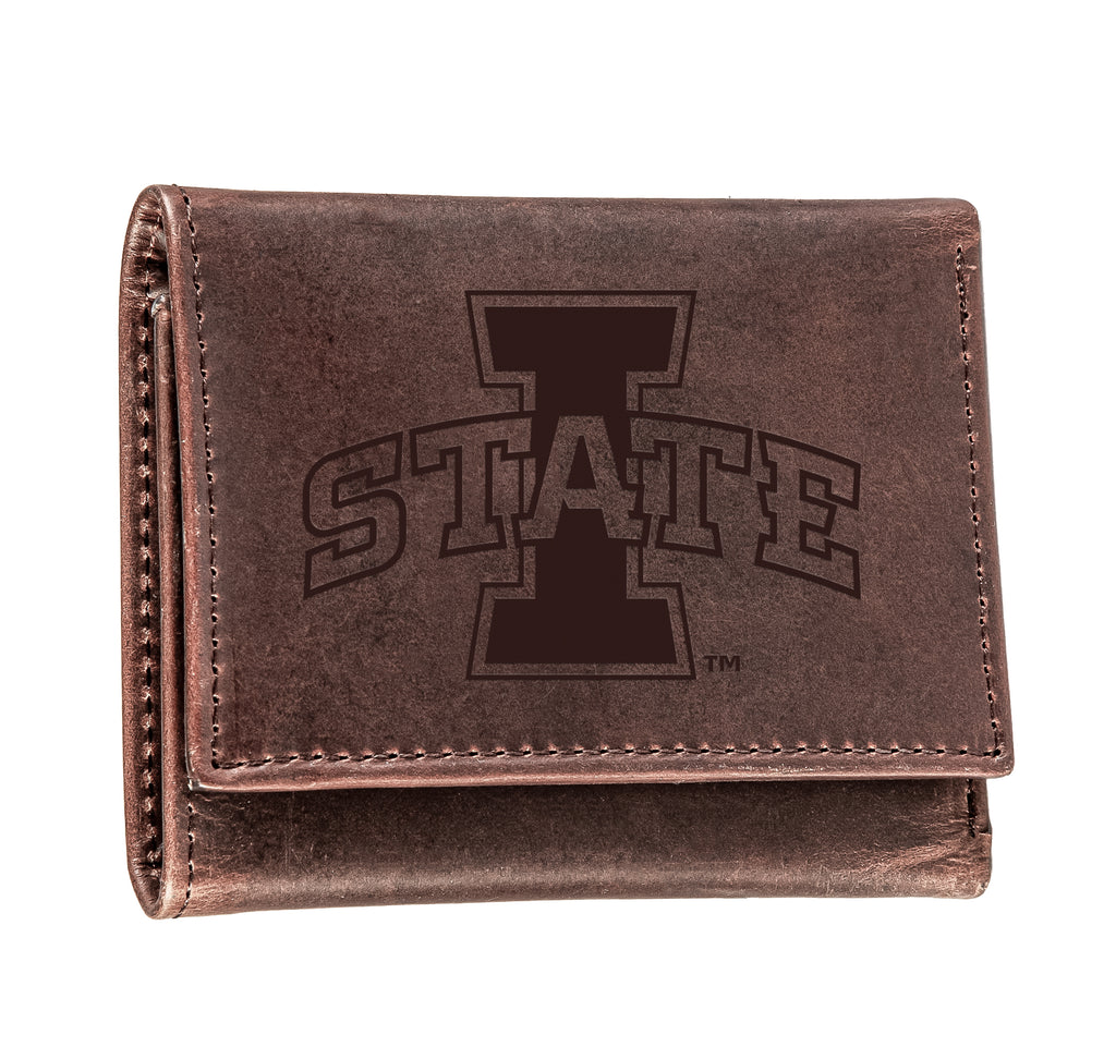 This Iowa State University tri-fold wallet is crafted from 100% genuine leather, offering durability and style. The embossed university logo adds a touch of collegiate pride.