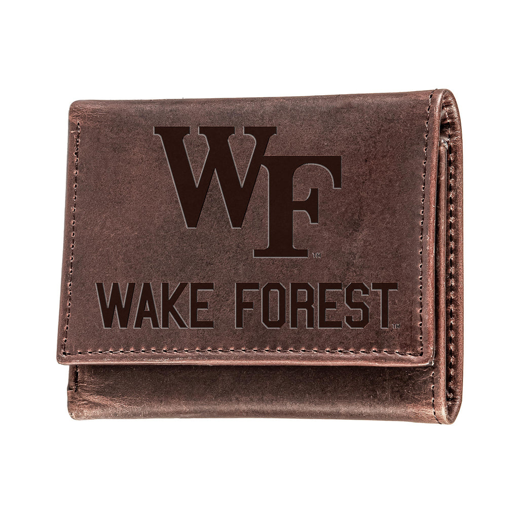 Wake Forest University, Tri-Fold Wallet, Brown, CH, 100% Genuine Leather