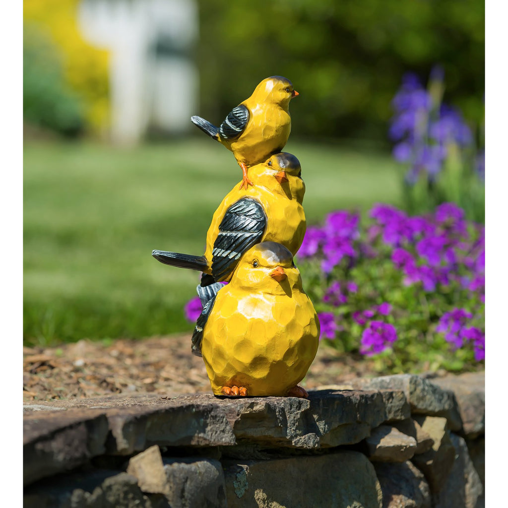 15.5"H Stacked Goldfinch Trio Garden Statuary, 10.04"x7.48"x15.55"inches