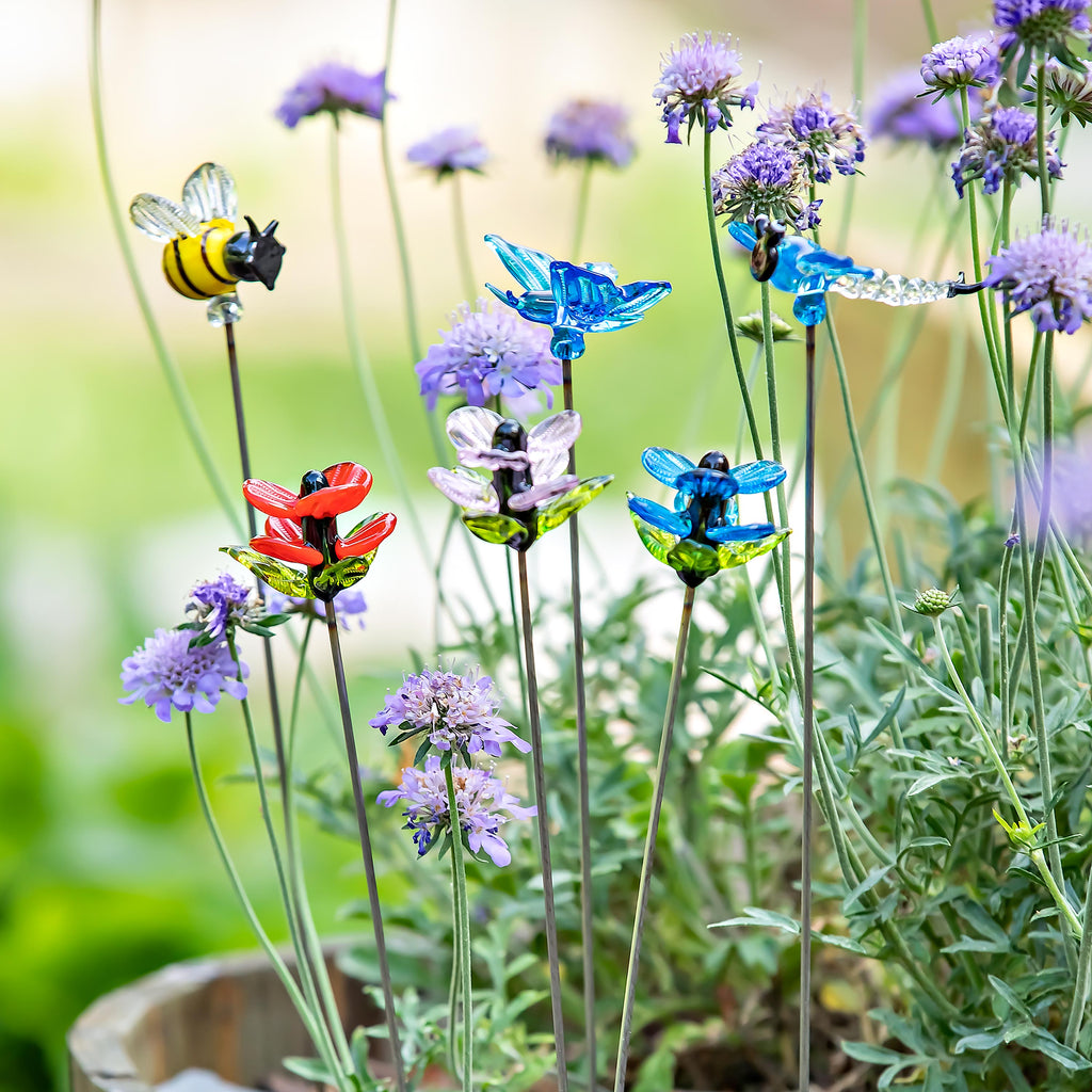 Enhance your garden's charm with this set of six vibrant glass insect plant picks, perfect for adding a touch of whimsy to any outdoor space.