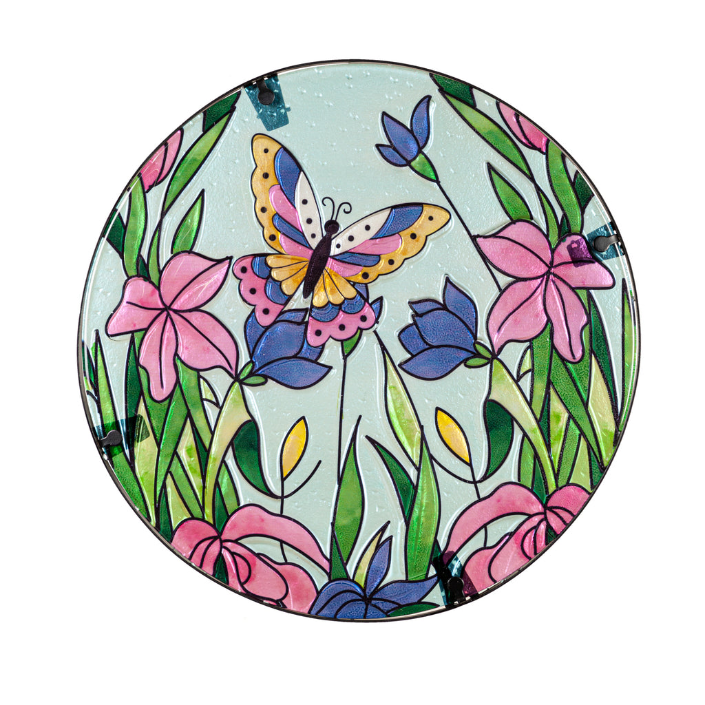 The vibrant colors of this Plant Stand will add beauty and function to any porch or patio. The Butterfly is painted with stunning colors that will leave on lookers in awe. The lush pattern is classically simple yet striking in its textured detail.