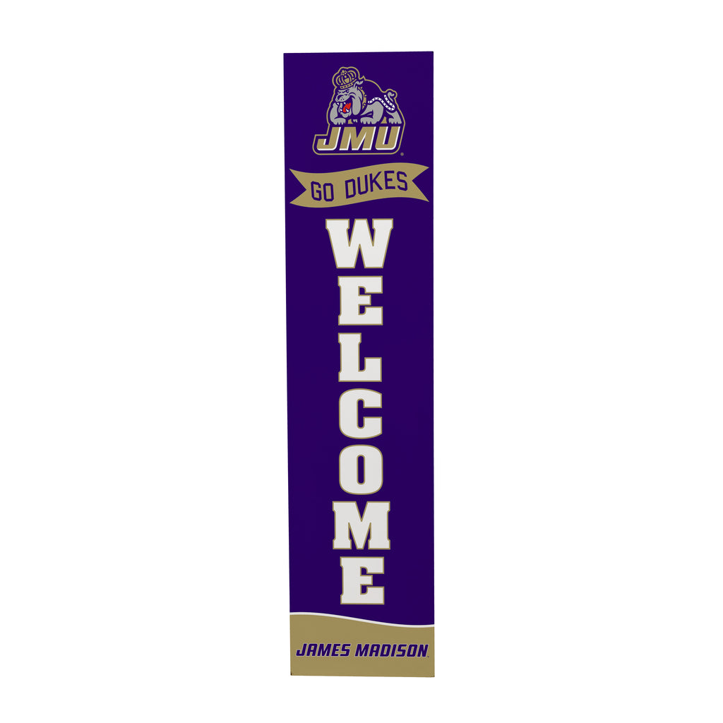 Showcase your school pride with the James Madison University Large Single Sided Leaner, perfect for any porch or entryway. This vibrant leaner features the JMU logo and welcoming text.