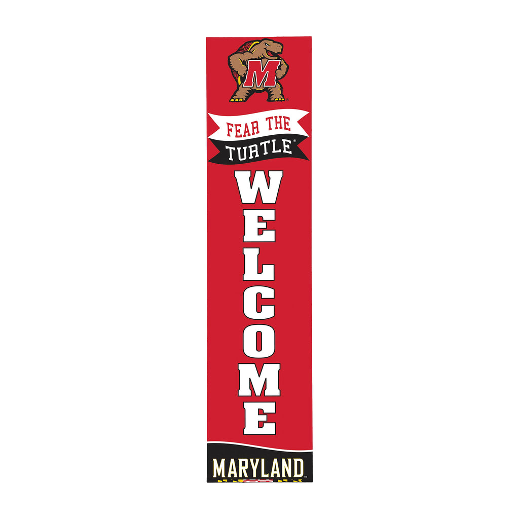 Showcase your University of Maryland pride with this vibrant porch leaner, featuring iconic team colors and a welcoming message.