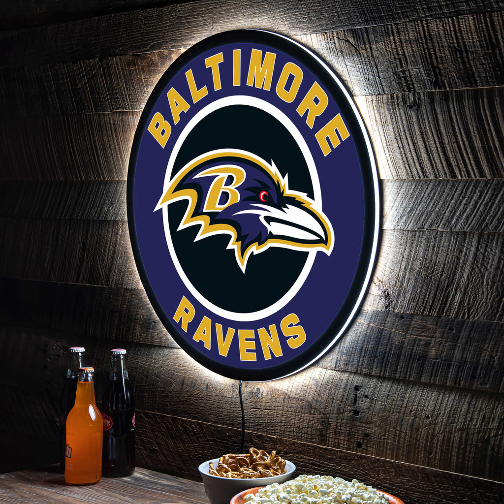 Illuminate your space with the Baltimore Ravens NFL Football Large Round Edgelite LED Decor, a perfect addition for any fan's room. This striking wall art features the iconic Ravens logo, adding a vibrant touch to your indoor wall decor.