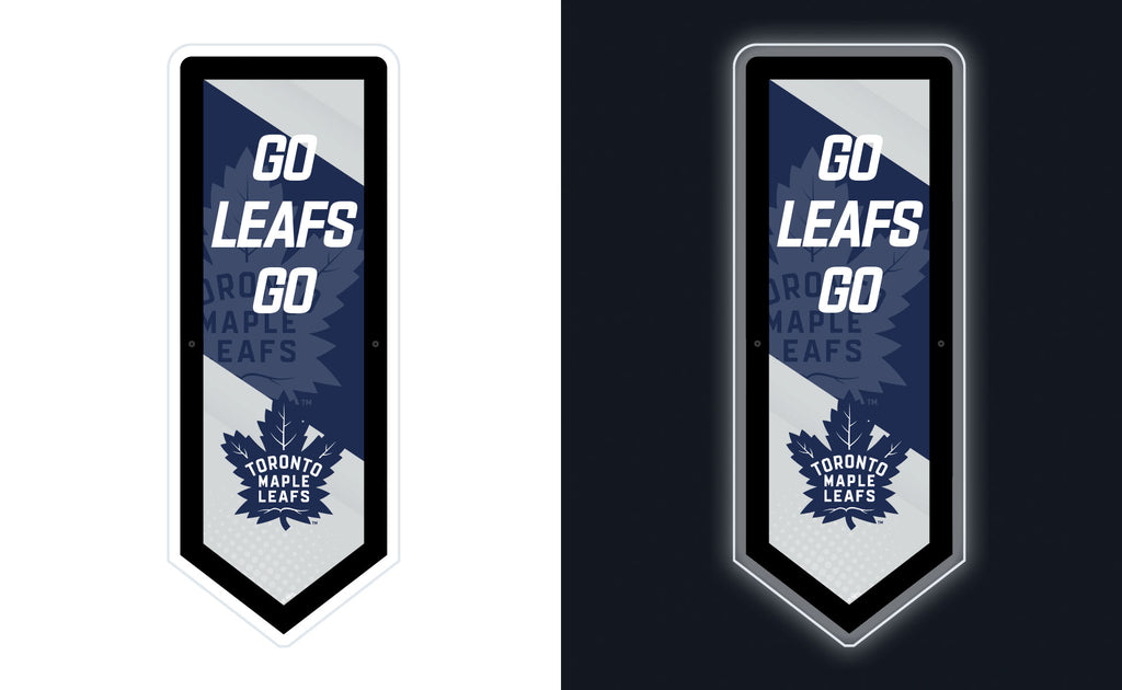 Illuminate your space with the Toronto Maple Leafs Hockey Pennant Glazelite LED Decor, perfect for any fan. This sleek wall art piece features LED lighting to enhance its vibrant design.