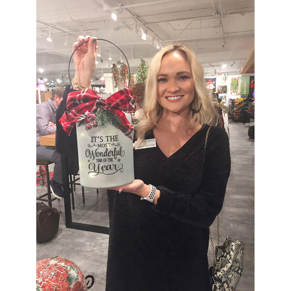 LED Jar with Plaid Ribbon, Pine, and Berries, 2 Assorted: Red/White,8led497