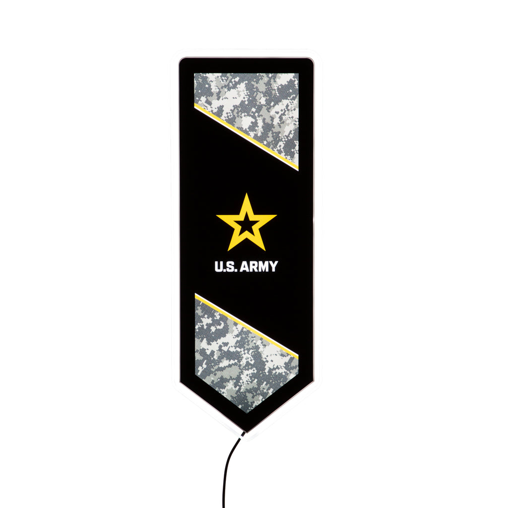 Illuminate your space with the US Army Military Pennant Glazelite LED Decor, featuring a striking LED-lit design that showcases your support for the Army.