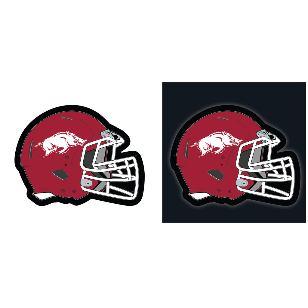 Illuminate your space with the University of Arkansas College Helmet Edgelite LED Decor, a perfect addition for any Razorbacks fan. This wall art piece features a striking LED-lit design in the shape of a football helmet.