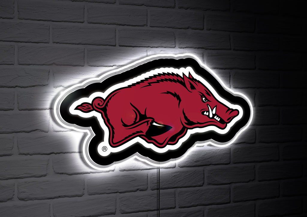 Illuminate your space with the University of Arkansas College Mascot Glazelite LED Decor, featuring a striking razorback design. This vibrant wall art is perfect for fans looking to showcase their school spirit.