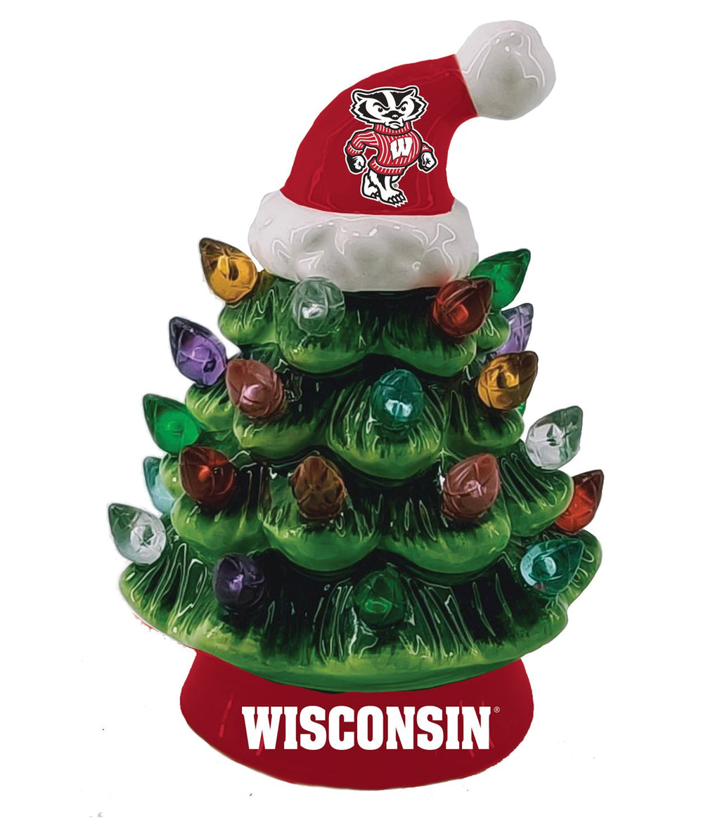Celebrate the festive season with this 8-inch LED Ceramic Christmas Tree featuring the University of Wisconsin-Madison logo. Perfect for adding a touch of school spirit to your holiday decor.