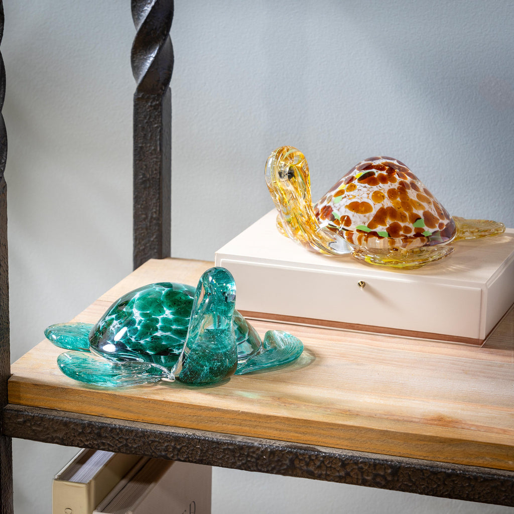 Add a touch of elegance to your tabletop with these exquisite turtle-shaped glass decorations, featuring vibrant colors and intricate designs.