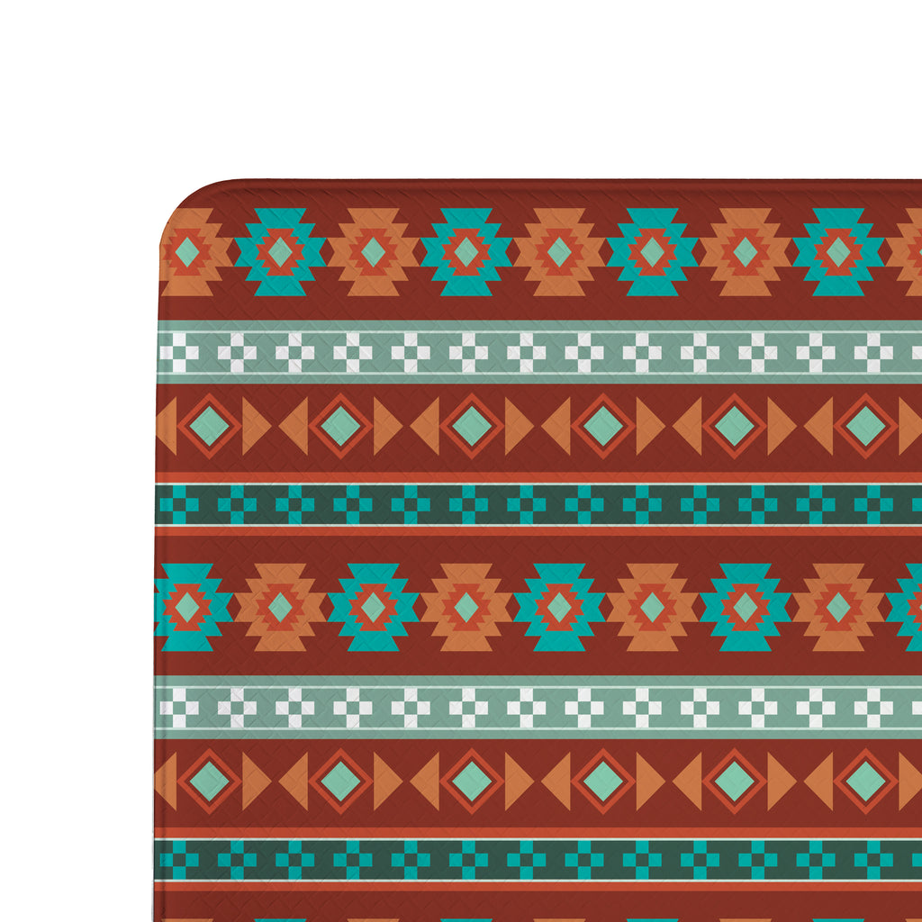 Enhance your home with the Southwest Pueblo Anti-Fatigue Mat, featuring a vibrant Aztec design. Perfect for adding comfort and style to your kitchen or workspace.