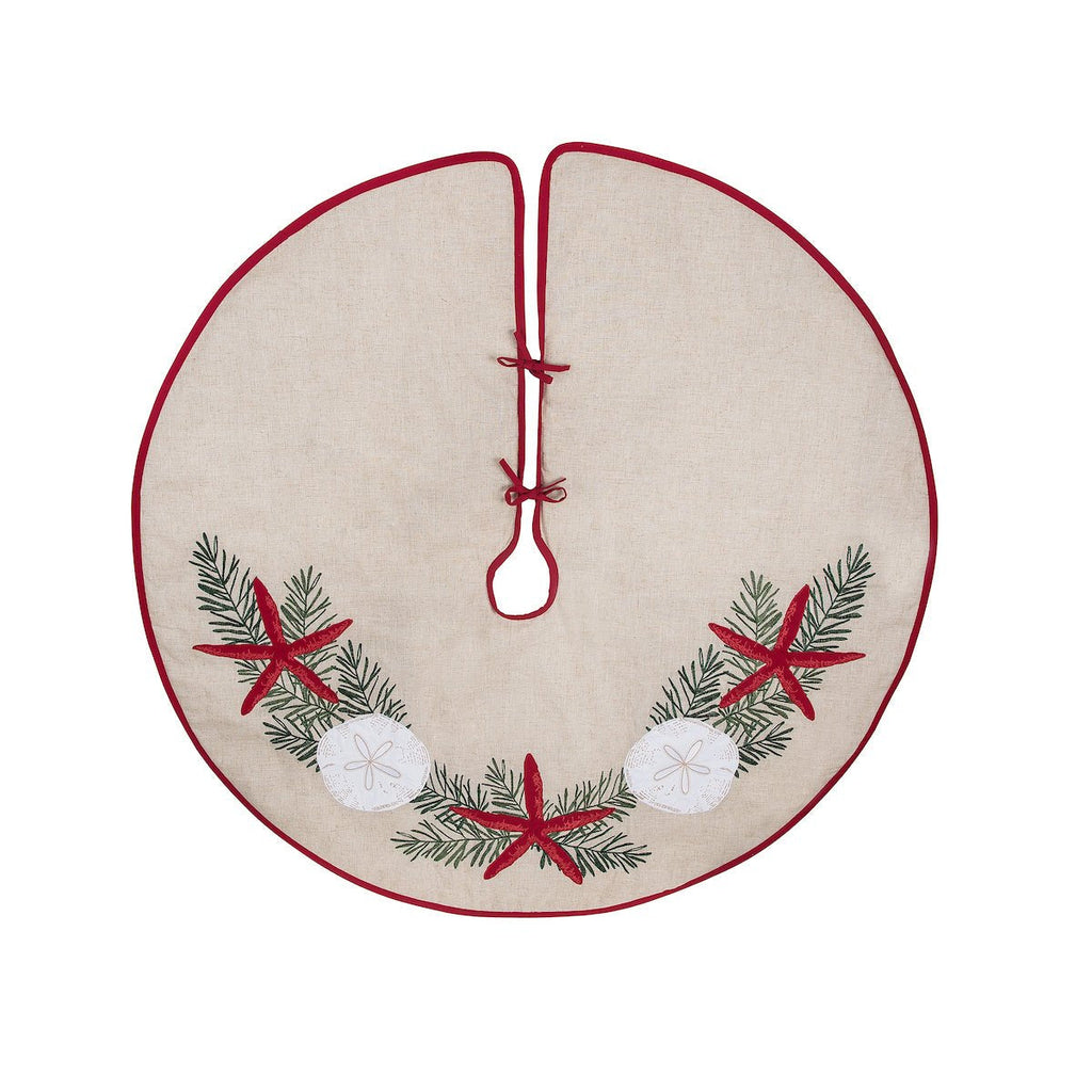 Transform your holiday decor with the Seaside Greeting Tree Skirt. This beautifully designed tree skirt brings a touch of coastal charm to your Christmas tree, making your celebrations feel warm and inviting.